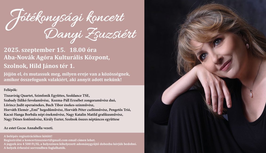 Danyi Zsuzsanna neve sokak számára ismerősen cseng Szolnokon – nincs olyan kulturális területe a város életének, ahol ne tette volna le névjegyét. Lelkes és aktív alakjaként, számtalan művészeti program, előadás és koncert fűződik a nevéhez. Egy éve azonban élete egyik legnagyobb kihívásával kellett szembenéznie: súlyos betegséget diagnosztizáltak nála, amely ellen azóta is kitartóan küzd. Felépülése hosszú folyamat, a kezelések pedig erősen megterhelték a családi erőforrásokat.