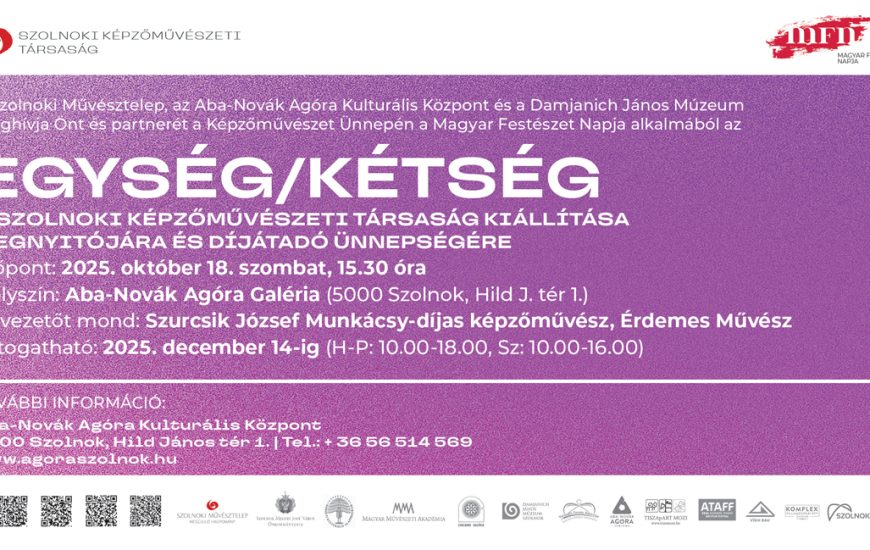 A Szolnoki Művésztelep, az Aba-Novák Agóra Kulturális Központ és a Damjanich János Múzeum meghívja Önt és partnerét a Képzőművészet Ünnepén a Magyar Festészet Napja alkalmából az Egység/Kétség – A Szolnoki Képzőművészeti Társaság kiállítása megnyitójára és díjátadó ünnepségére Időpont: 2025. október...