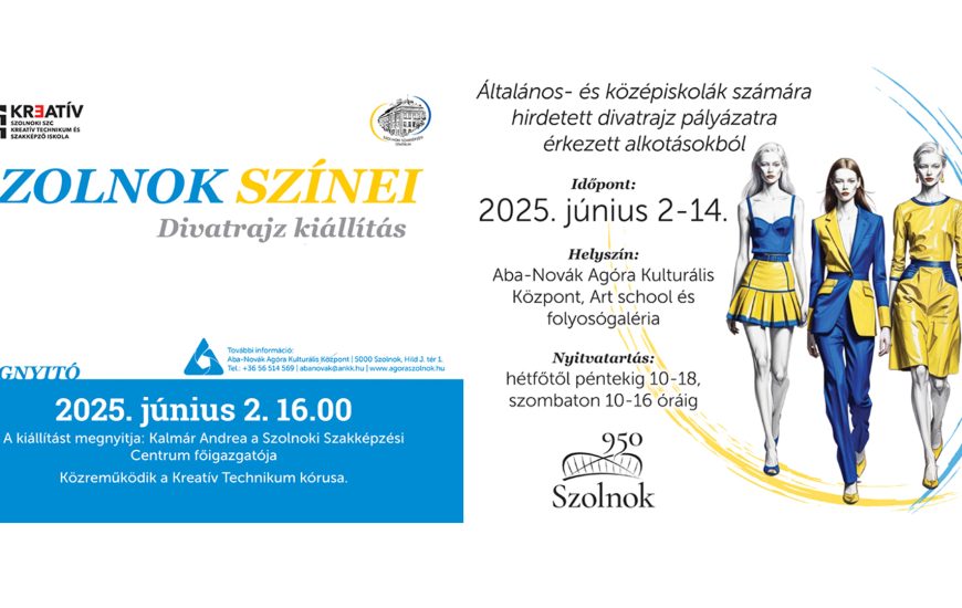 Divatrajz kiállítás általános és középiskolás szolnoki diákok számára kiírt divatrajz pályázatra beérkezett alkotásokból. A kiállítás június 14-ig látható.