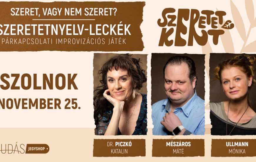 SZERETETKERT: Szeret vagy nem szeret? Szeretetnyelv-leckék – párkapcsolati improvizációs játékA Szeretetkert előadásaiban a párkapcsolatok kerülnek reflektorfénybe: megnézzük annak különböző területeit, szakaszait, a dinamikákat és konfliktusokat, valamint, hogy hogyan tudjuk ezeket kezelni. Az este folyamán Dr. Piczkó Katalin (pszichiáter, tréner, coach,...