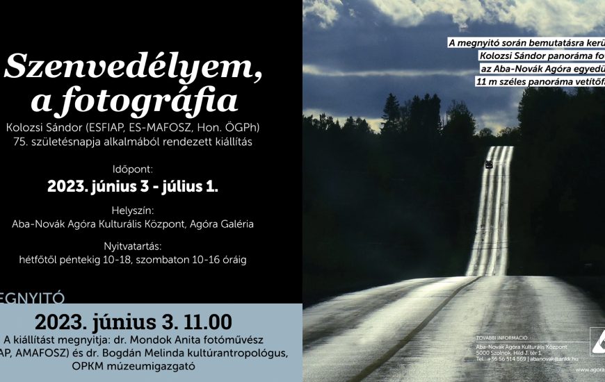 Kolozsi Sándor szolnoki fotóművész (ESFIAP, ES-MAFOSZ, Hon. ÖGPh) 75. születésnapja alkalmából rendezett kiállításunkra invitálunk. Megnyitó: holnap, szombat, 11.00Kolozsi Sándor élete jelentős részében előd intézményünkben, a Megyei Művelődési Központban dolgozott, és fontos szakmai feladata volt Szolnok és a megye fotókultúrájának szervezése,...